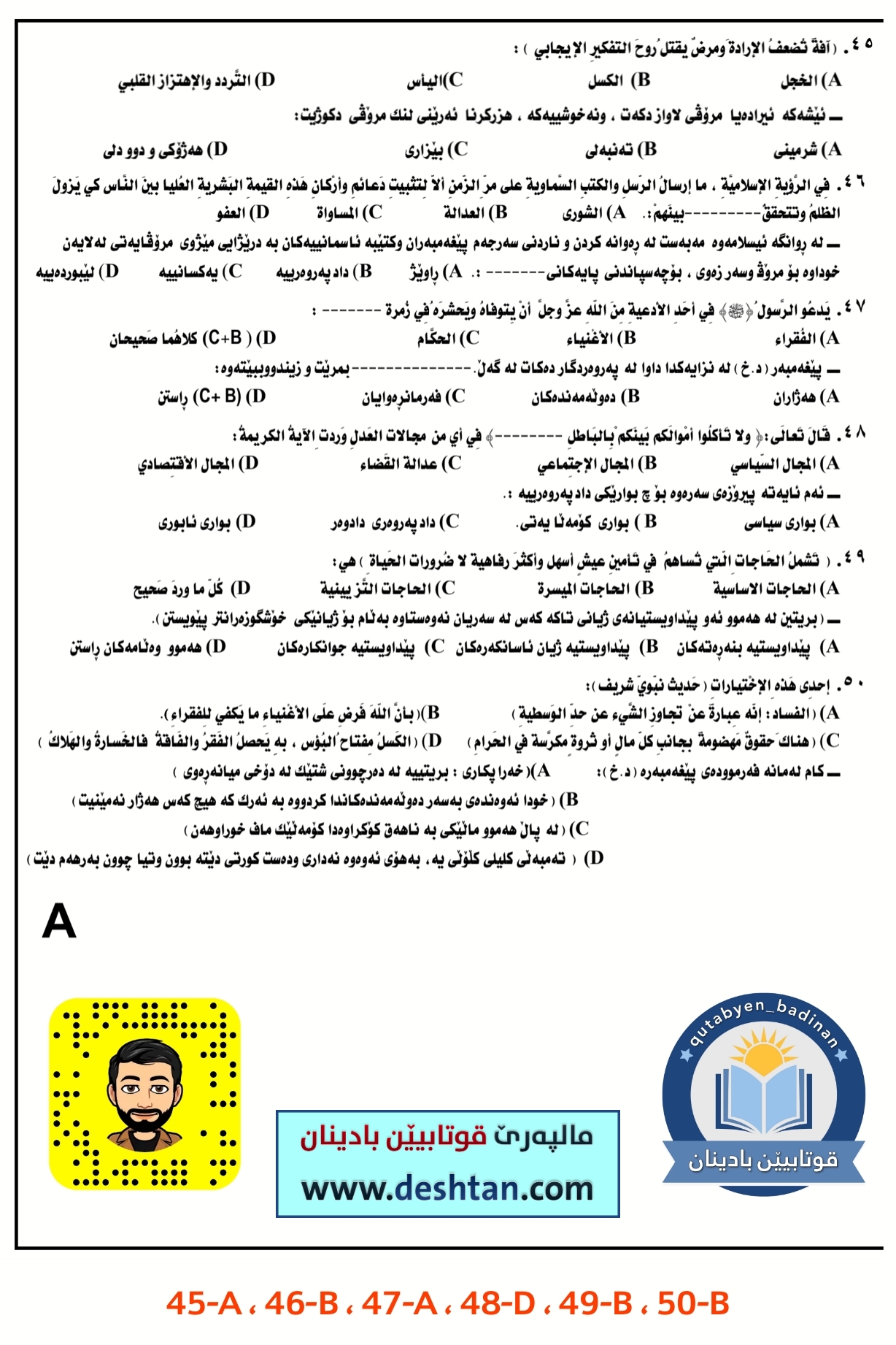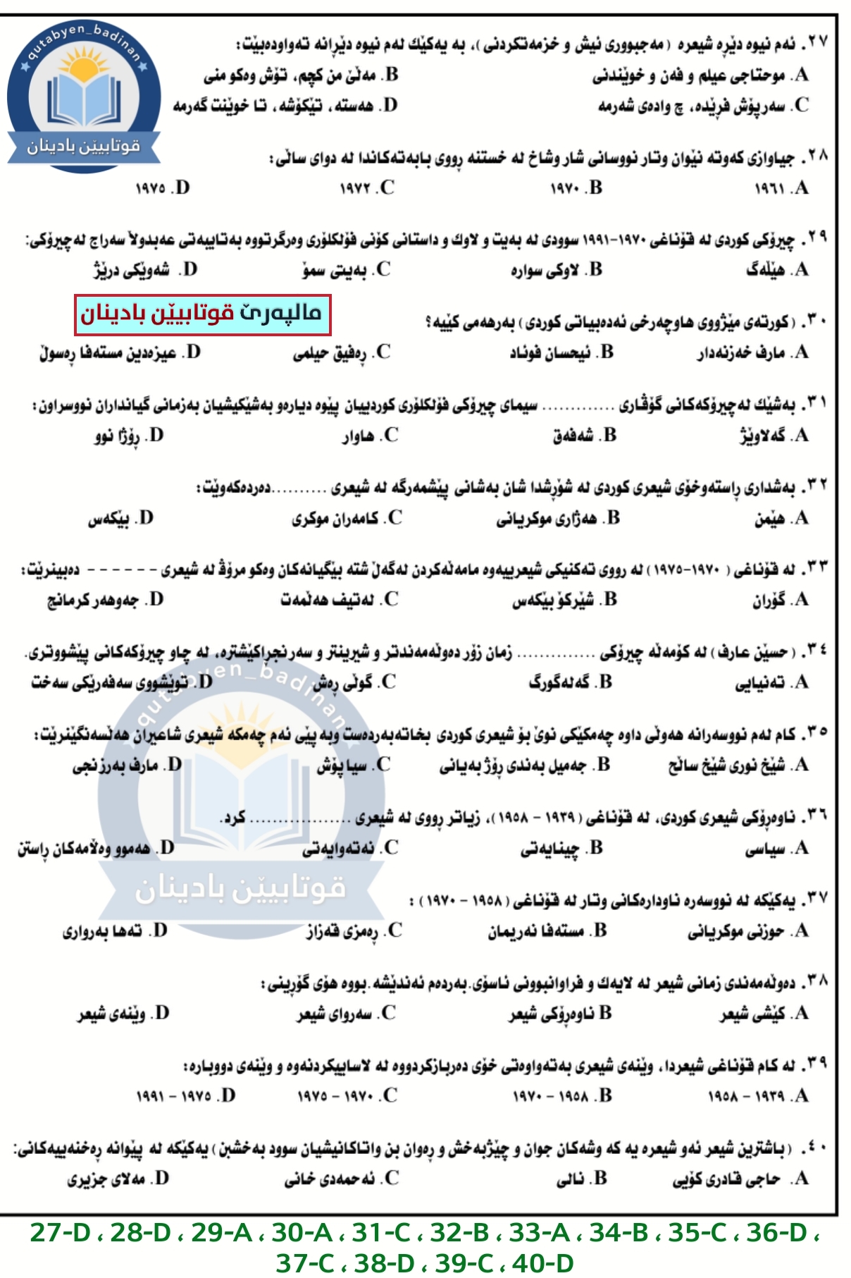 پرسیارێن ویزاری بۆ پولا دوازدێ ئامادەیی