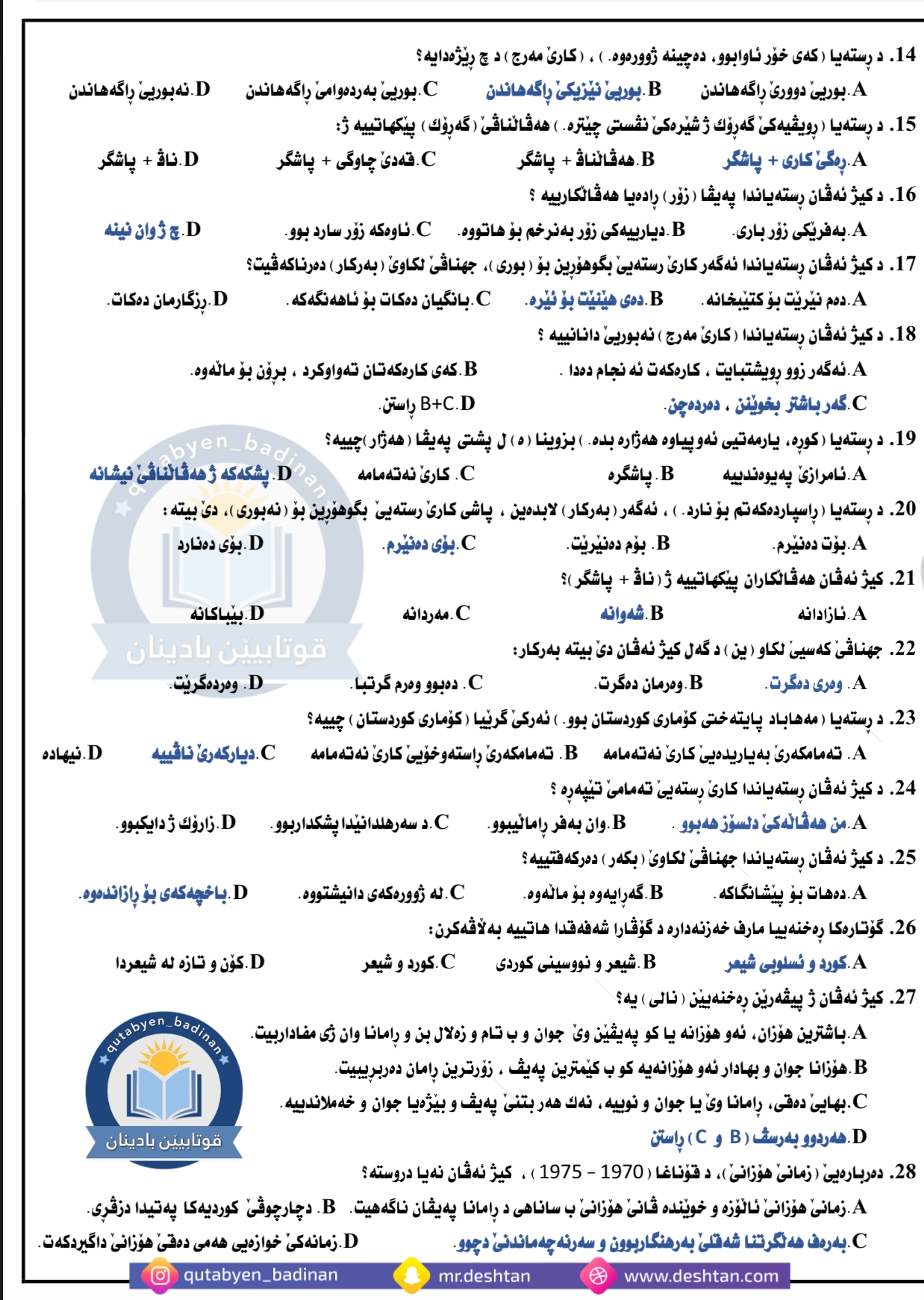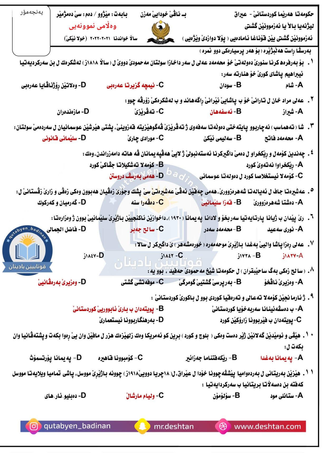 پرسیارێن ویزاری بۆ پولا دوازدێ ئامادەیی